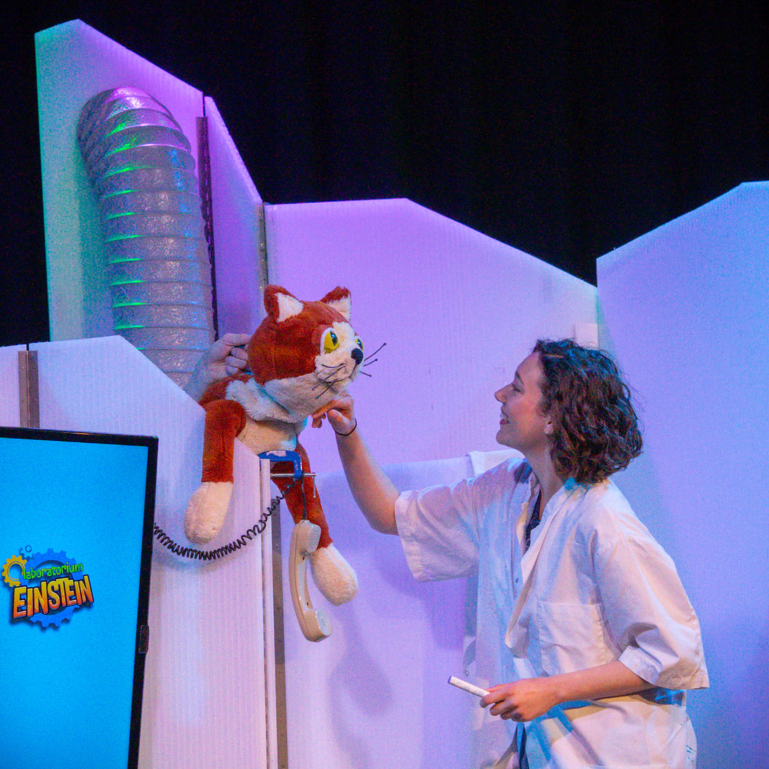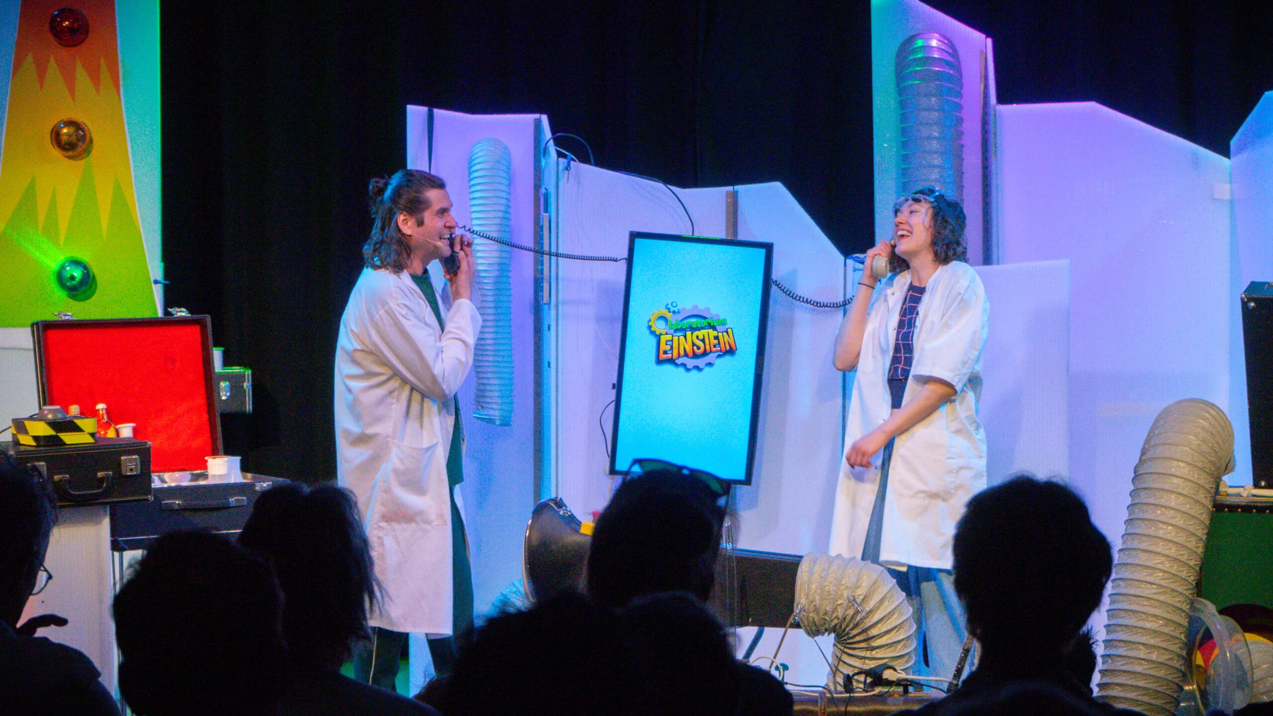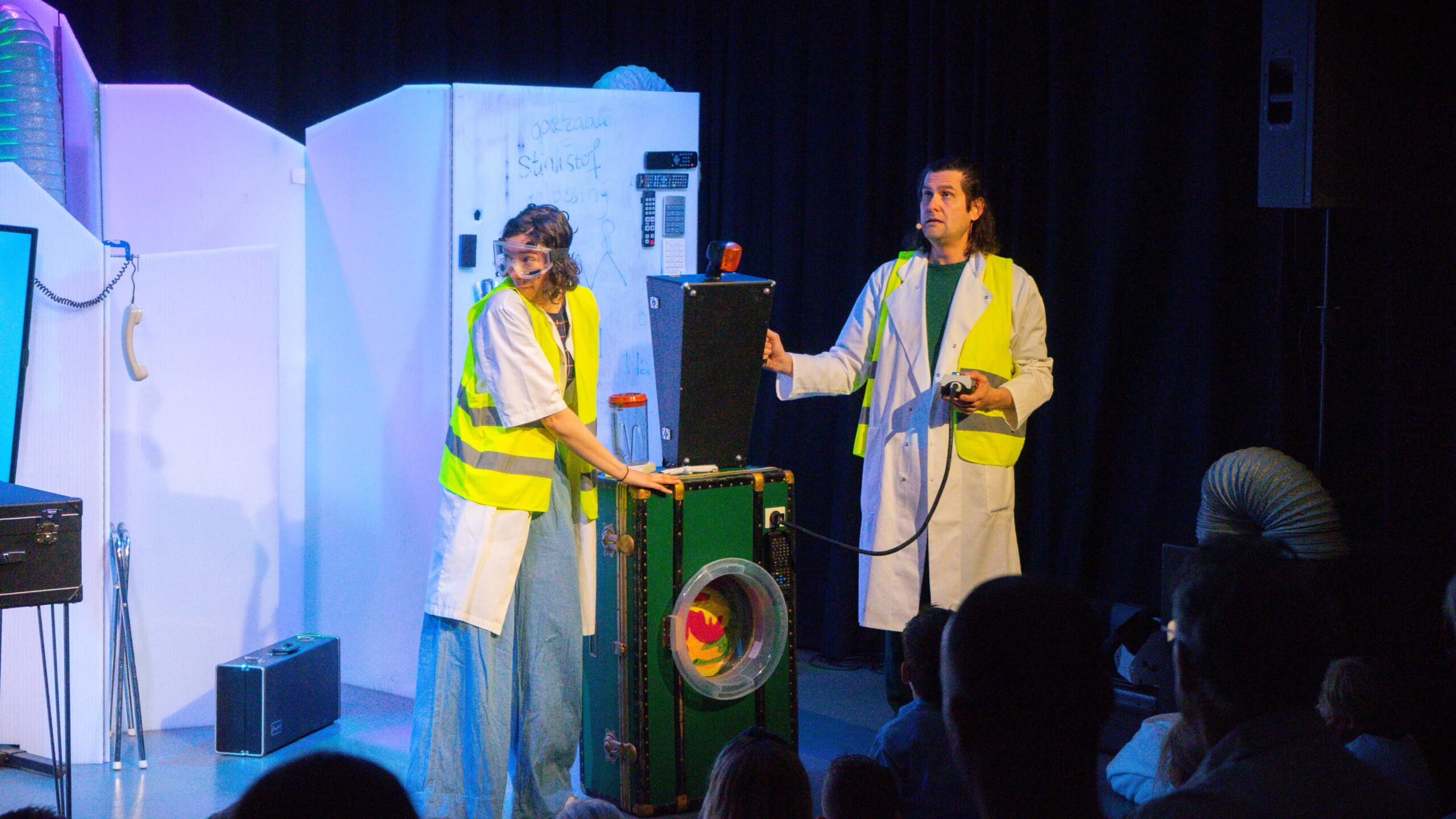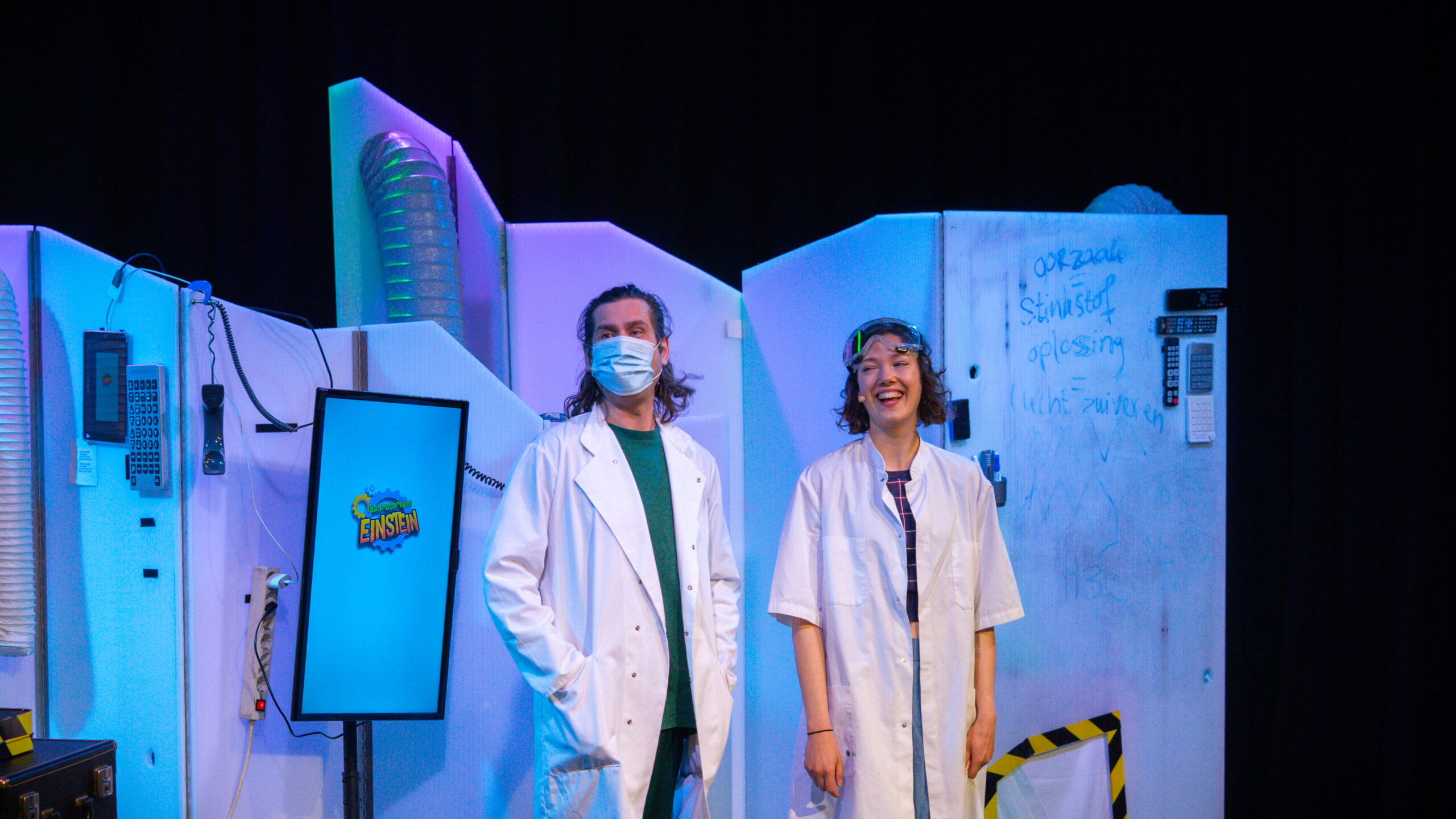 Er was hoog bezoek in het Muziekhuis. Dokter Bruis en Professor Stekker kwamen langs voor de familievoorstelling ‘Laboratorium Einstein en de Stinkstad’.